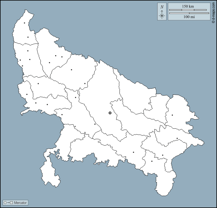 d-maps > एशिया > भारत > उत्तर प्रदेश > बाह्यरेखा, क्षेत्र, मुख्य शहरों