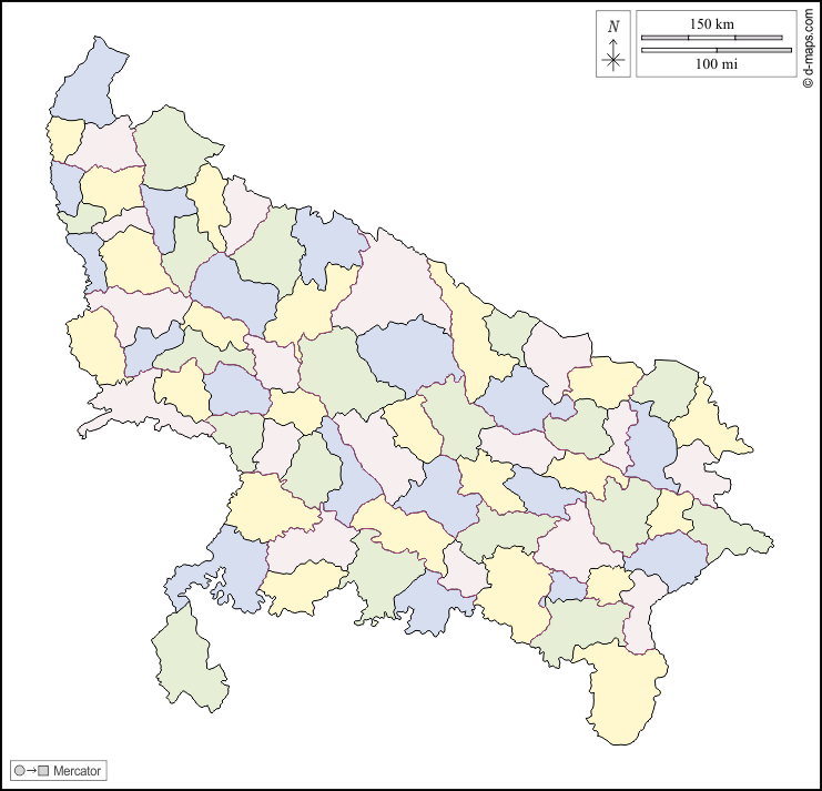 d-maps > एशिया > भारत > उत्तर प्रदेश > बाह्यरेखा, जिलों, रंग, सफेद