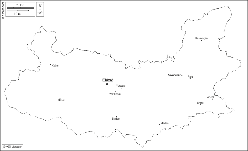 d-maps > एशिया > तुर्की > एलिज़िग > बाह्यरेखा, मुख्य शहरों, नाम, सफेद