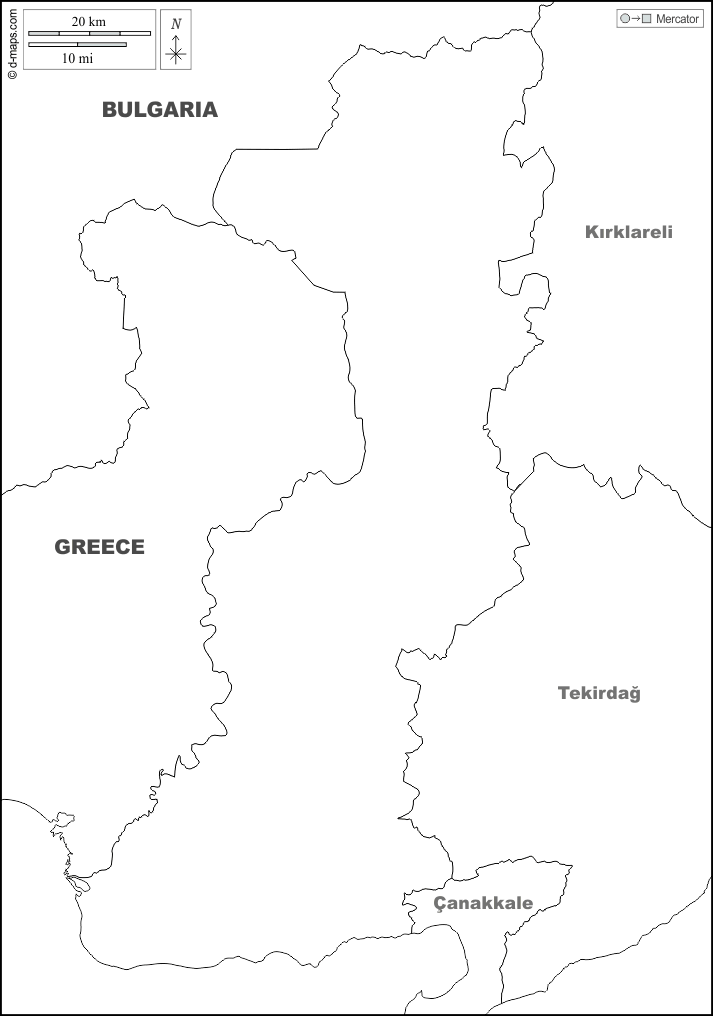 d-maps > एशिया > तुर्की > एडिर्न > सीमाओं, नाम, सफेद