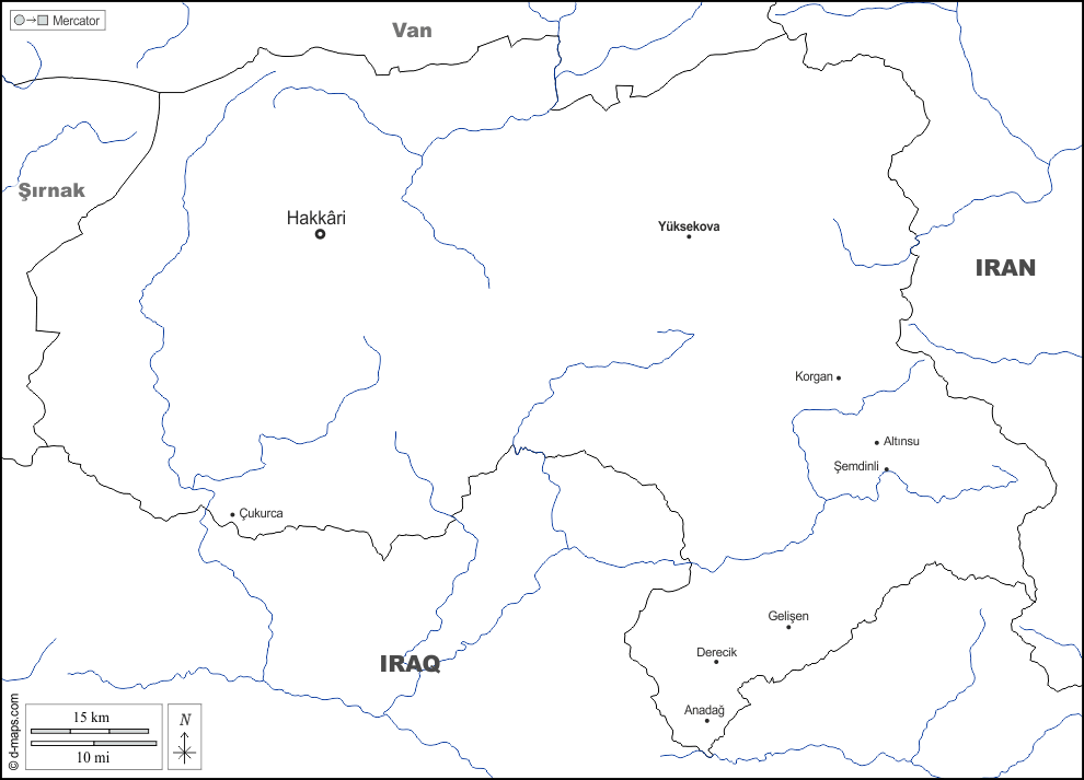 d-maps > एशिया > तुर्की > हक्करी > सीमाओं, जल-सर्वेक्षण, मुख्य शहरों, नाम, सफेद