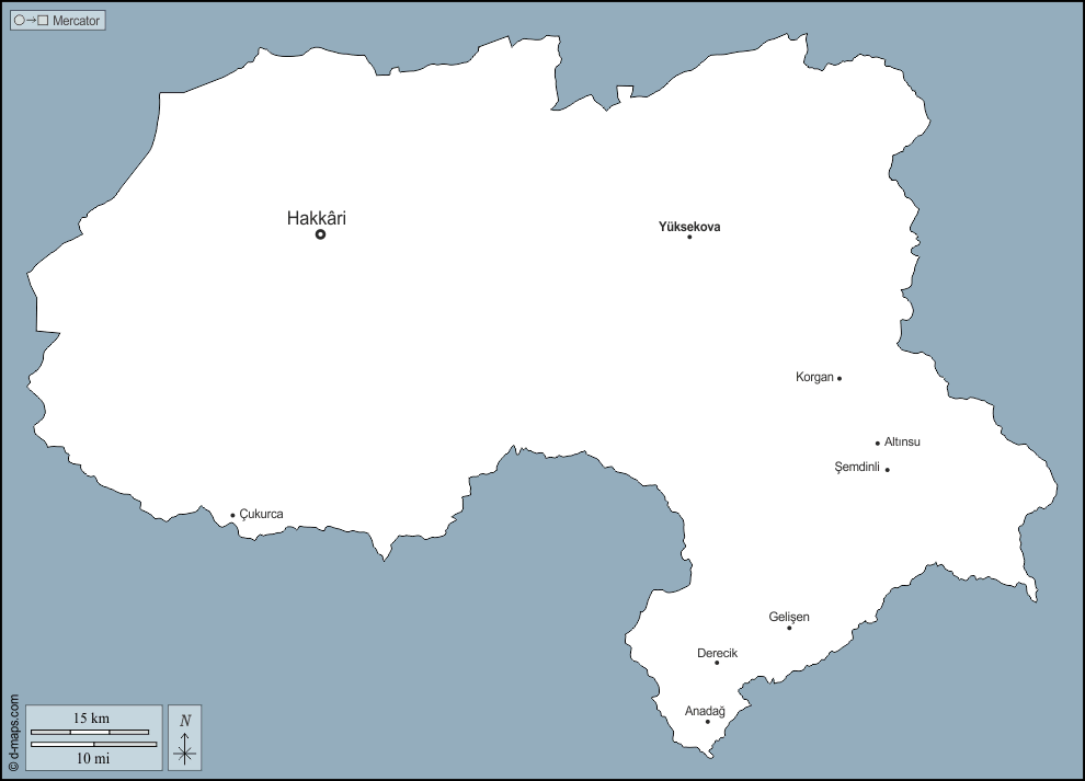 d-maps > एशिया > तुर्की > हक्करी > बाह्यरेखा, मुख्य शहरों, नाम