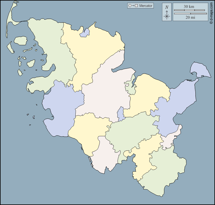 d-maps > यूरोप > जर्मनी > श्लेस्विग-होल्स्टीन राज्य > बाह्यरेखा, जिलों, रंग