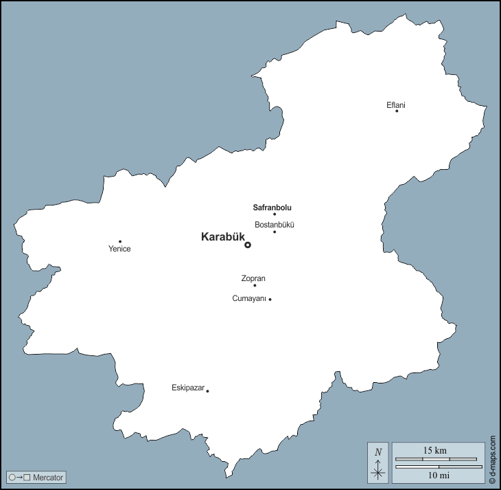 d-maps > एशिया > तुर्की > काराबुक > बाह्यरेखा, मुख्य शहरों, नाम