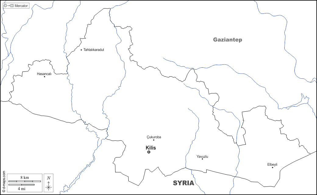 d-maps > एशिया > तुर्की > किलिस > सीमाओं, जल-सर्वेक्षण, मुख्य शहरों, नाम, सफेद