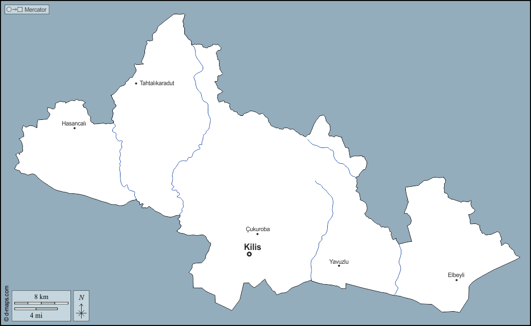 d-maps > एशिया > तुर्की > किलिस > बाह्यरेखा, जल-सर्वेक्षण, मुख्य शहरों, नाम