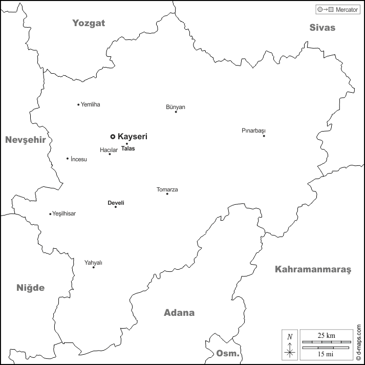 d-maps > एशिया > तुर्की > कायेरी > सीमाओं, मुख्य शहरों, नाम, सफेद