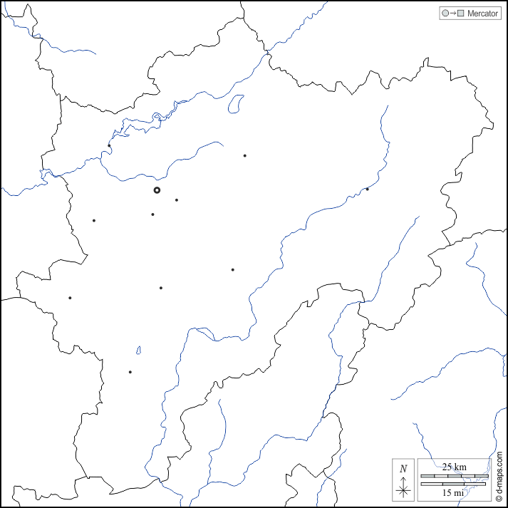 d-maps > एशिया > तुर्की > कायेरी > सीमाओं, जल-सर्वेक्षण, मुख्य शहरों, सफेद