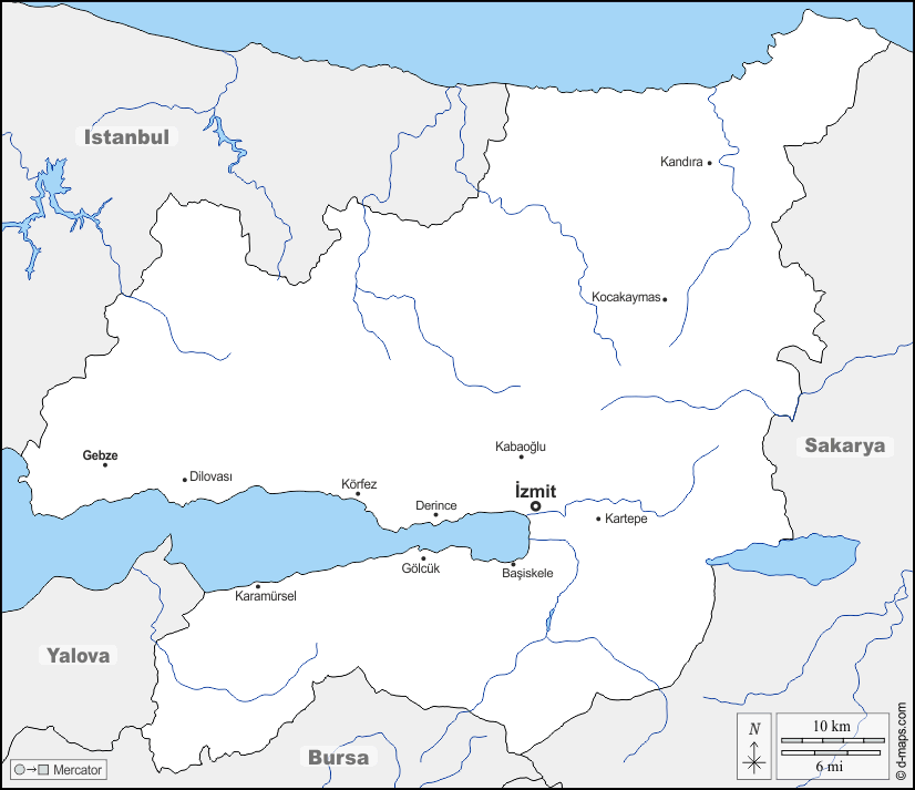 d-maps > एशिया > तुर्की > कोकाएली > सीमाओं, जल-सर्वेक्षण, मुख्य शहरों, नाम