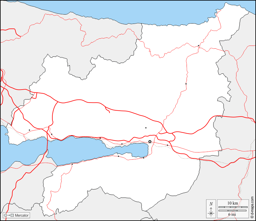 d-maps > एशिया > तुर्की > कोकाएली > सीमाओं, मुख्य शहरों, सड़कों