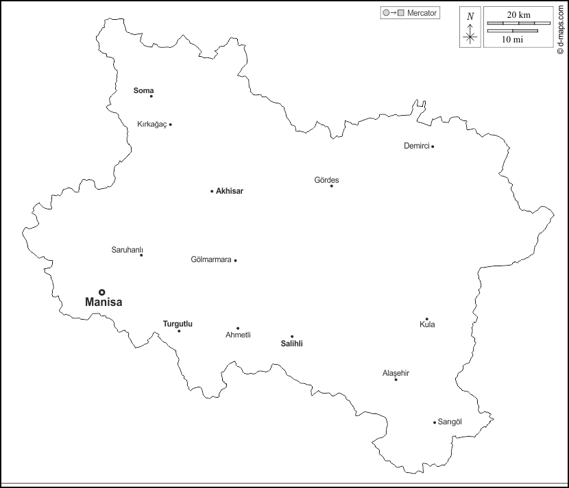 d-maps > एशिया > तुर्की > मनिसा > बाह्यरेखा, मुख्य शहरों, नाम, सफेद