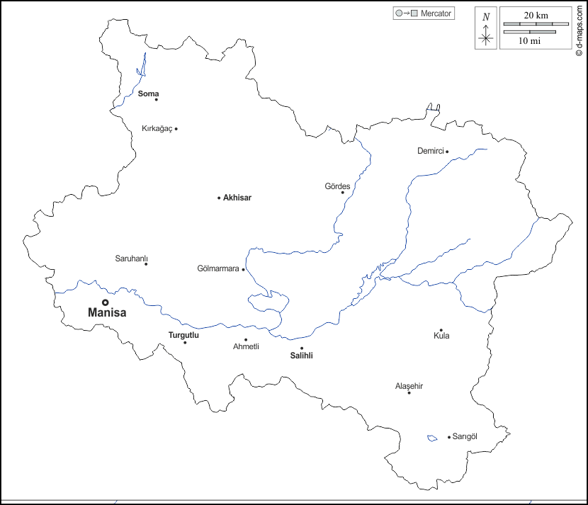 d-maps > एशिया > तुर्की > मनिसा > बाह्यरेखा, जल-सर्वेक्षण, मुख्य शहरों, नाम, सफेद
