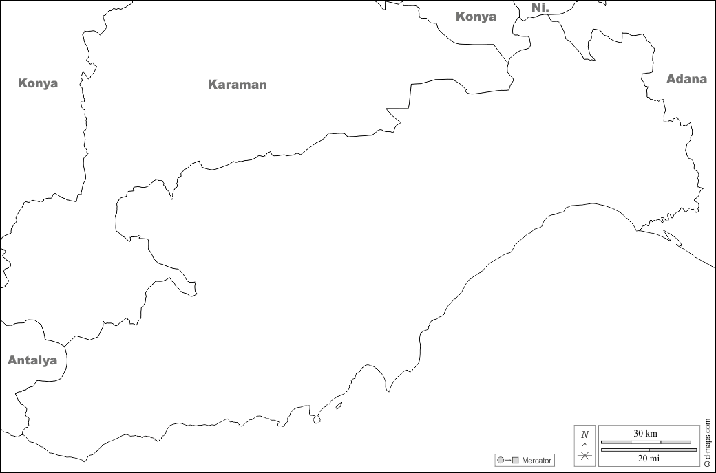 d-maps > एशिया > तुर्की > मर्सिन > सीमाओं, नाम, सफेद