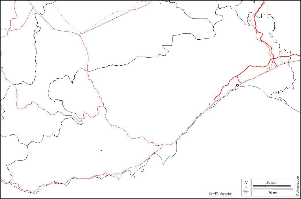 d-maps > एशिया > तुर्की > मर्सिन > सीमाओं, मुख्य शहरों, सड़कों, सफेद