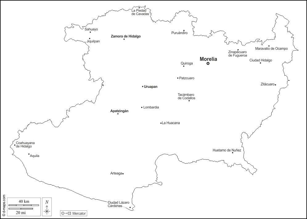 d-maps > महाअमेरिका > मेक्सिको > मिचोआकान > बाह्यरेखा, मुख्य शहरों, नाम, सफेद