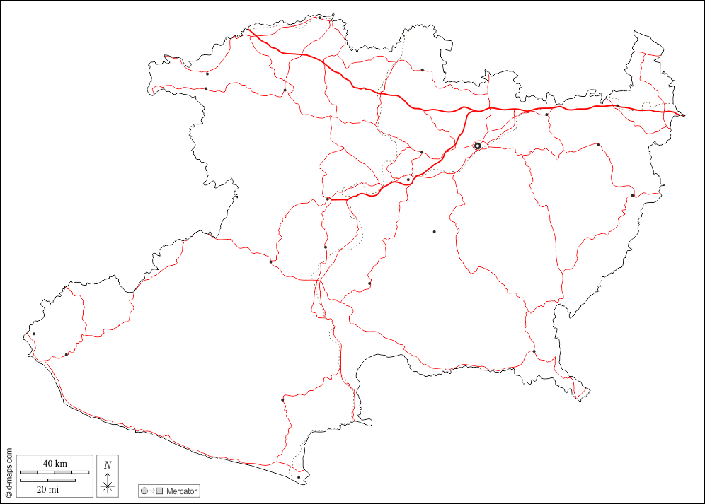 d-maps > महाअमेरिका > मेक्सिको > मिचोआकान > बाह्यरेखा, मुख्य शहरों, सड़कों, सफेद