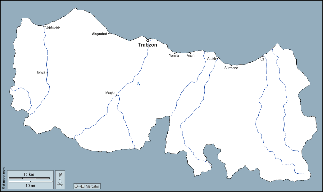 d-maps > एशिया > तुर्की > त्राब्जोन > बाह्यरेखा, जल-सर्वेक्षण, मुख्य शहरों, नाम
