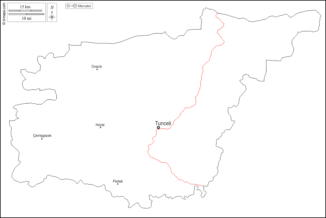 d-maps > एशिया > तुर्की > तुन्सेली > बाह्यरेखा, मुख्य शहरों, सड़कों, नाम, सफेद