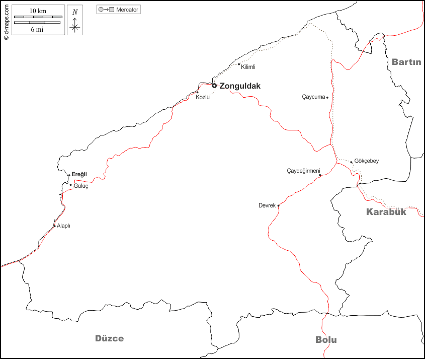 d-maps > एशिया > तुर्की > ज़ोंगुलडक > सीमाओं, मुख्य शहरों, सड़कों, नाम, सफेद