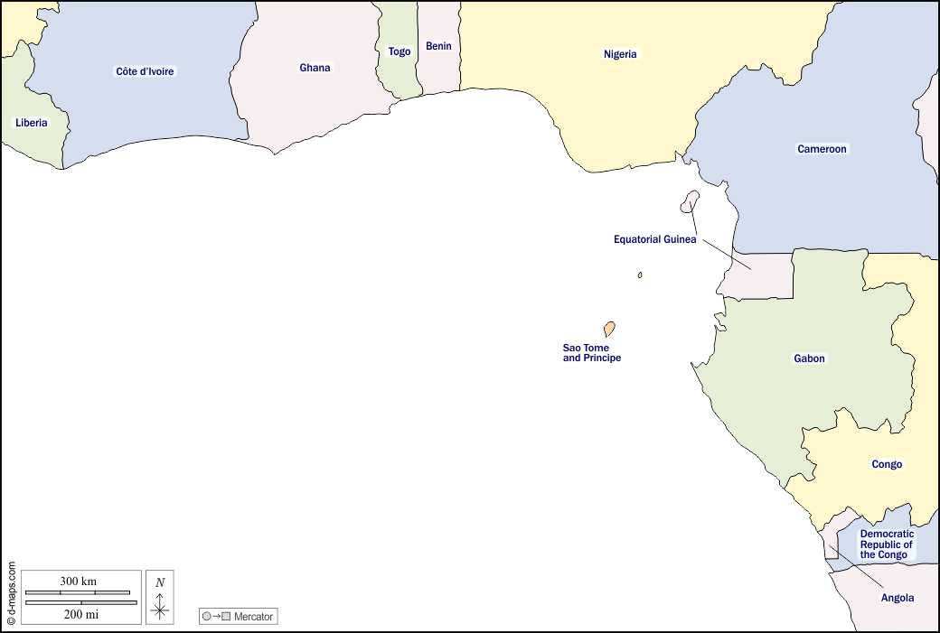 d-maps > अफ्रीका > गिनी की खाड़ी > राज्यों, नाम, रंग, सफेद
