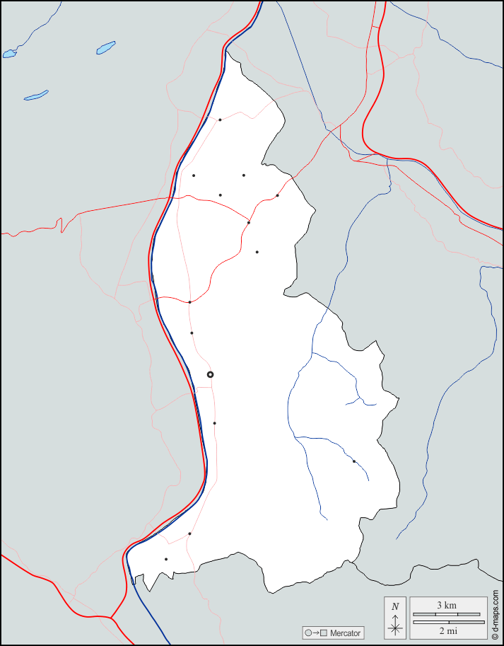 d-maps > यूरोप > लिख्टेंश्टाइन > सीमाओं, जल-सर्वेक्षण, मुख्य शहरों, सड़कों