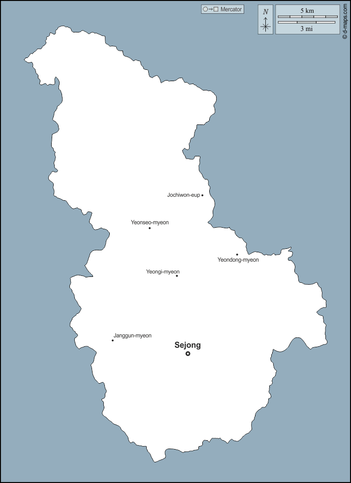 d-maps > एशिया > दक्षिण कोरिया > सेजोंग > बाह्यरेखा, मुख्य शहरों, नाम