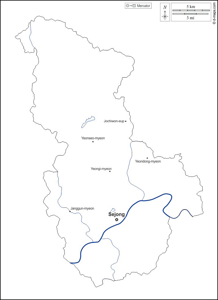 d-maps > एशिया > दक्षिण कोरिया > सेजोंग > बाह्यरेखा, जल-सर्वेक्षण, मुख्य शहरों, नाम, सफेद
