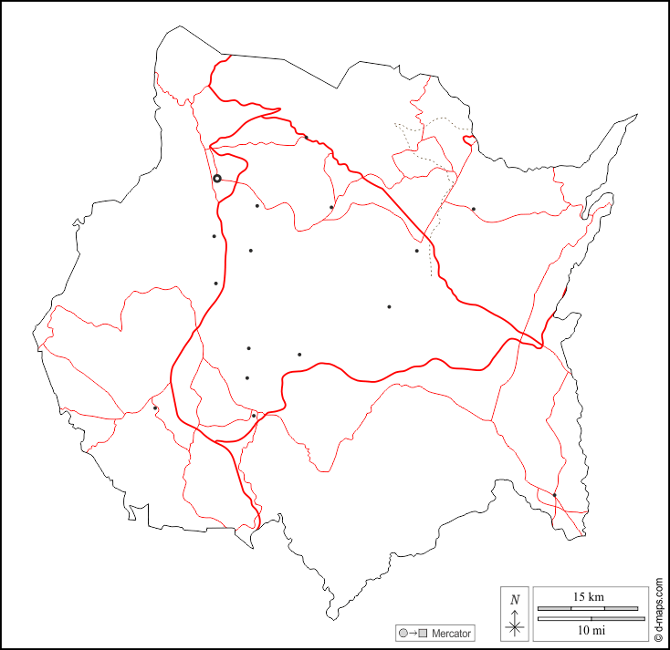d-maps > महाअमेरिका > मेक्सिको > मोरेलोस > बाह्यरेखा, मुख्य शहरों, सड़कों, सफेद