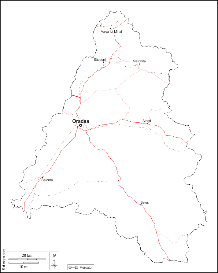 d-maps > यूरोप > रोमानिया > बिहोर काउंटी > बाह्यरेखा, मुख्य शहरों, सड़कों, नाम, सफेद