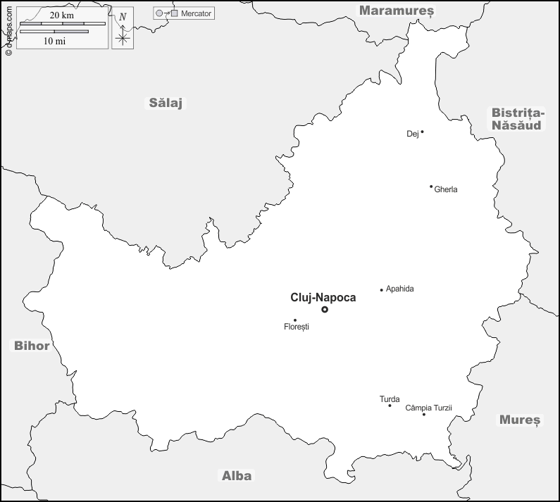 d-maps > यूरोप > रोमानिया > क्लुज > सीमाओं, मुख्य शहरों, नाम