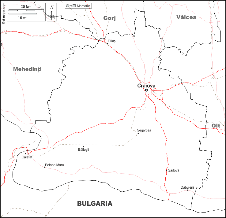 d-maps > यूरोप > रोमानिया > डोल्ज > सीमाओं, मुख्य शहरों, सड़कों, नाम, सफेद