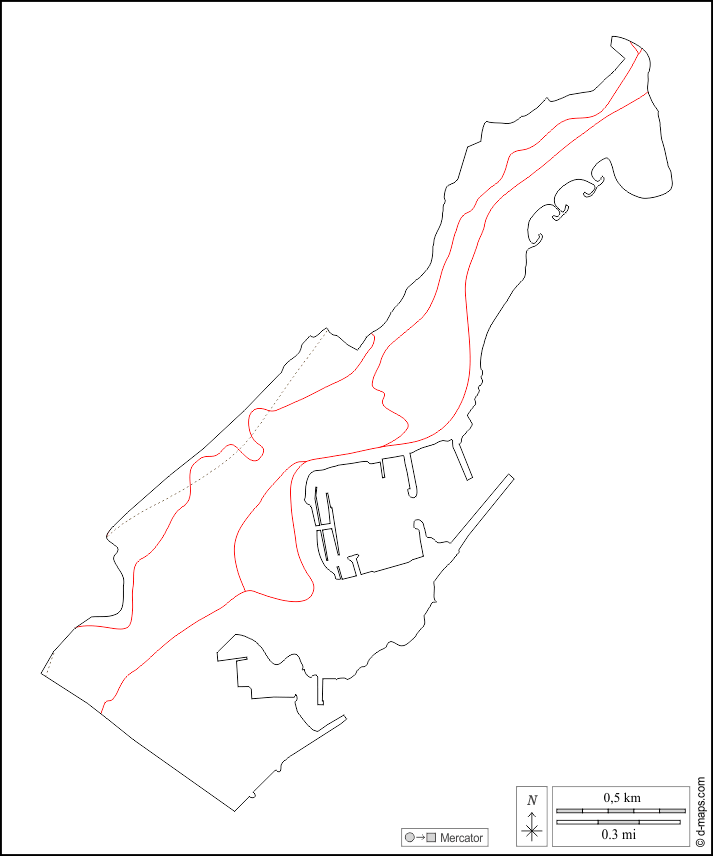 d-maps > यूरोप > मोनाको > बाह्यरेखा, सड़कों, सफेद
