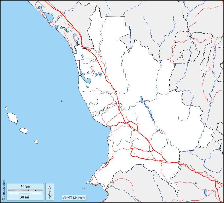 d-maps > महाअमेरिका > मेक्सिको > नायरिट > सीमाओं, जल-सर्वेक्षण, सड़कों