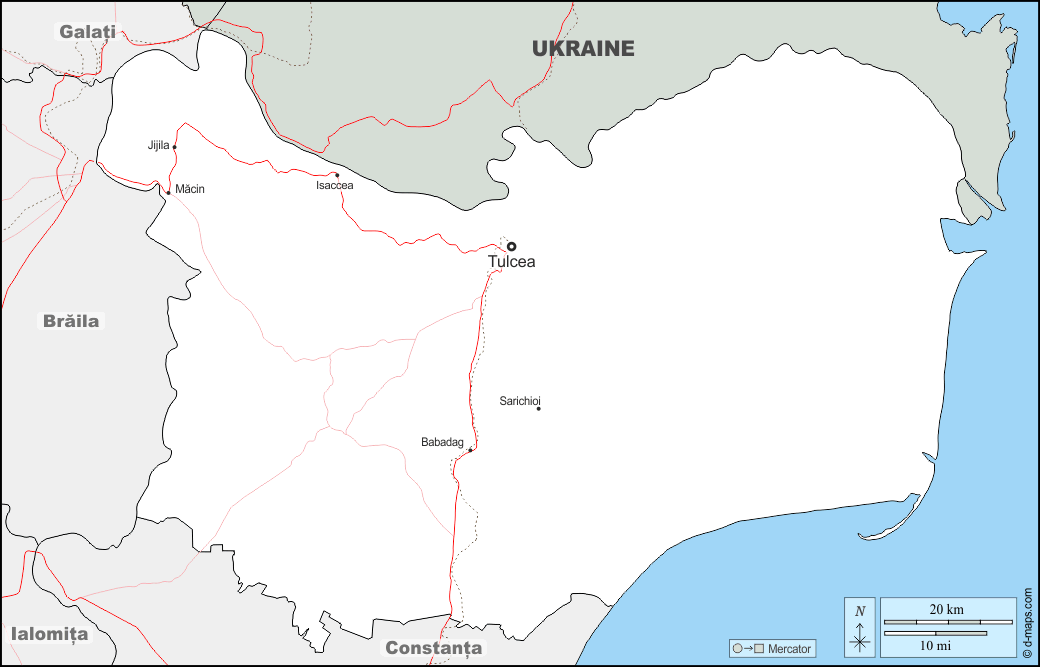 d-maps > यूरोप > रोमानिया > तुलसिया काउंटी > सीमाओं, मुख्य शहरों, सड़कों, नाम