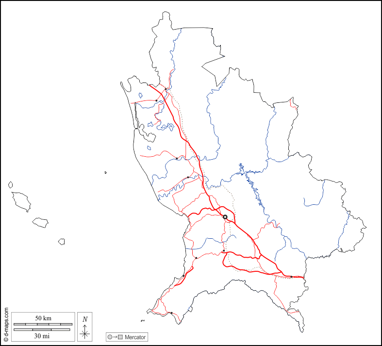 d-maps > महाअमेरिका > मेक्सिको > नायरिट > बाह्यरेखा, जल-सर्वेक्षण, मुख्य शहरों, सड़कों, सफेद