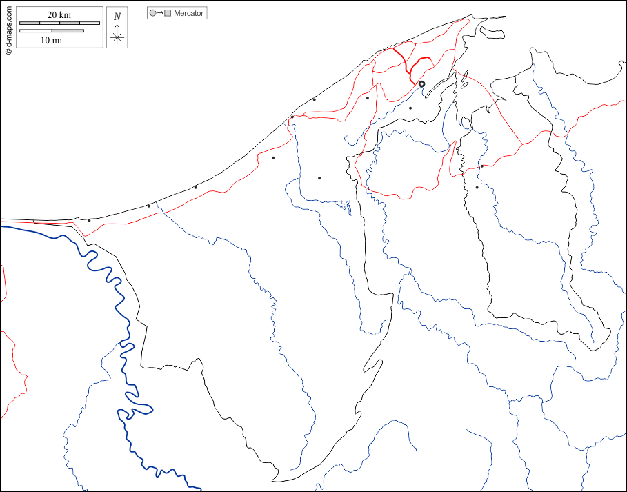 d-maps > एशिया > ब्रुनेई > सीमाओं, जल-सर्वेक्षण, मुख्य शहरों, सड़कों, सफेद