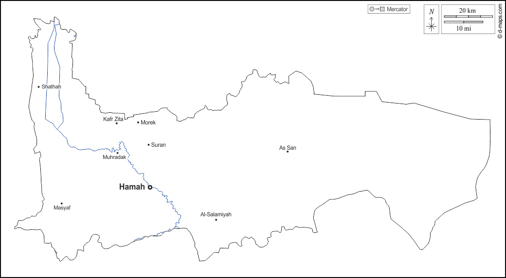 d-maps > एशिया > सीरिया > हामा > बाह्यरेखा, जल-सर्वेक्षण, मुख्य शहरों, नाम, सफेद