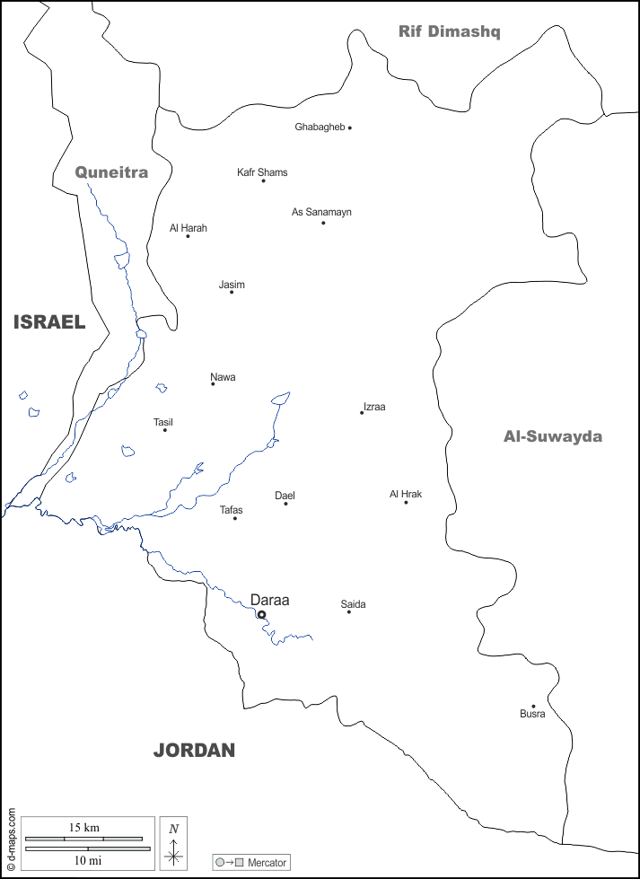 d-maps > एशिया > सीरिया > दारा > सीमाओं, जल-सर्वेक्षण, मुख्य शहरों, नाम, सफेद