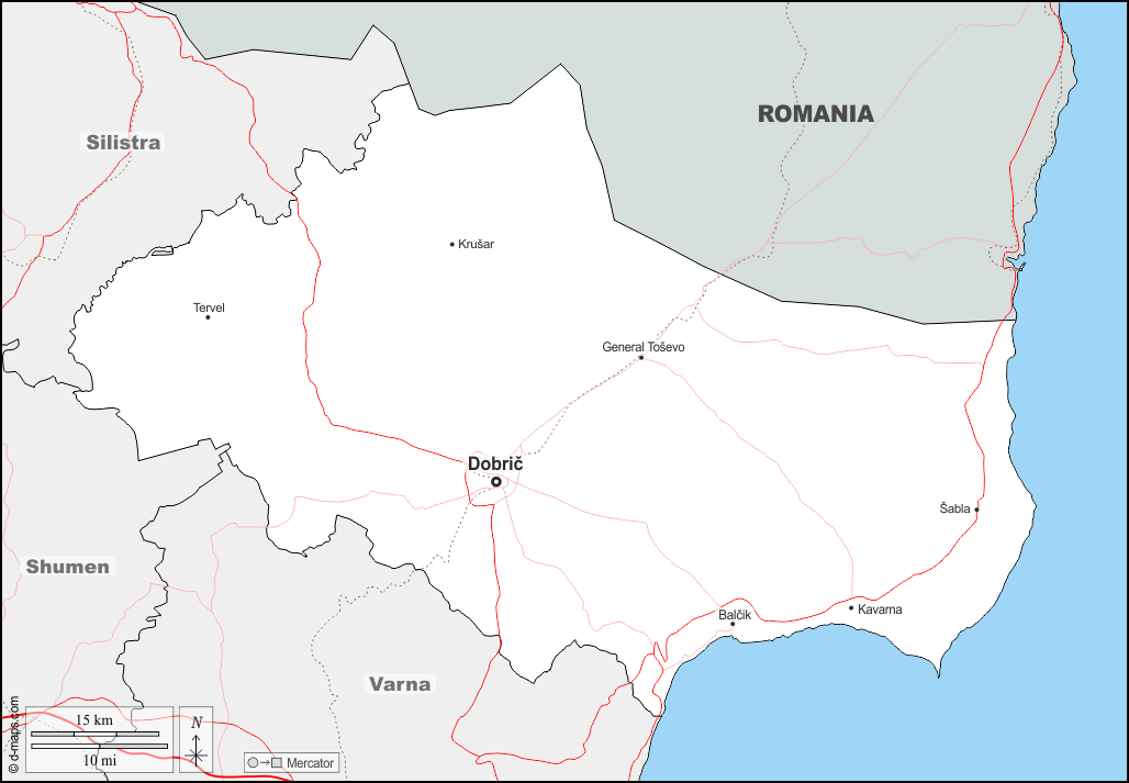 d-maps > यूरोप > बल्गारिया > डोब्रिच प्रांत > सीमाओं, मुख्य शहरों, सड़कों, नाम