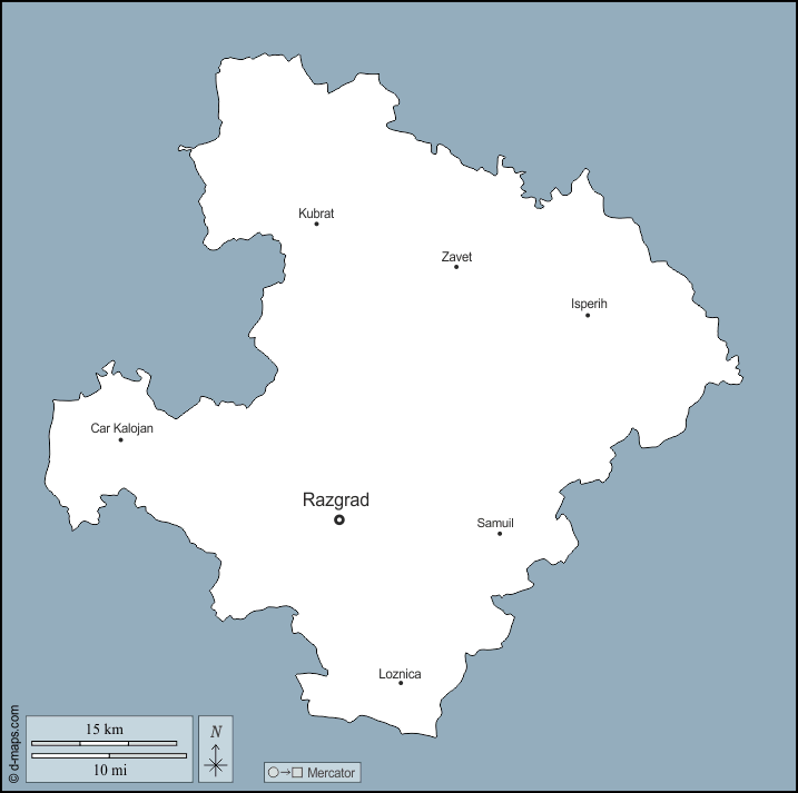 d-maps > यूरोप > बल्गारिया > रज़ग्राद प्रांत > बाह्यरेखा, मुख्य शहरों, नाम