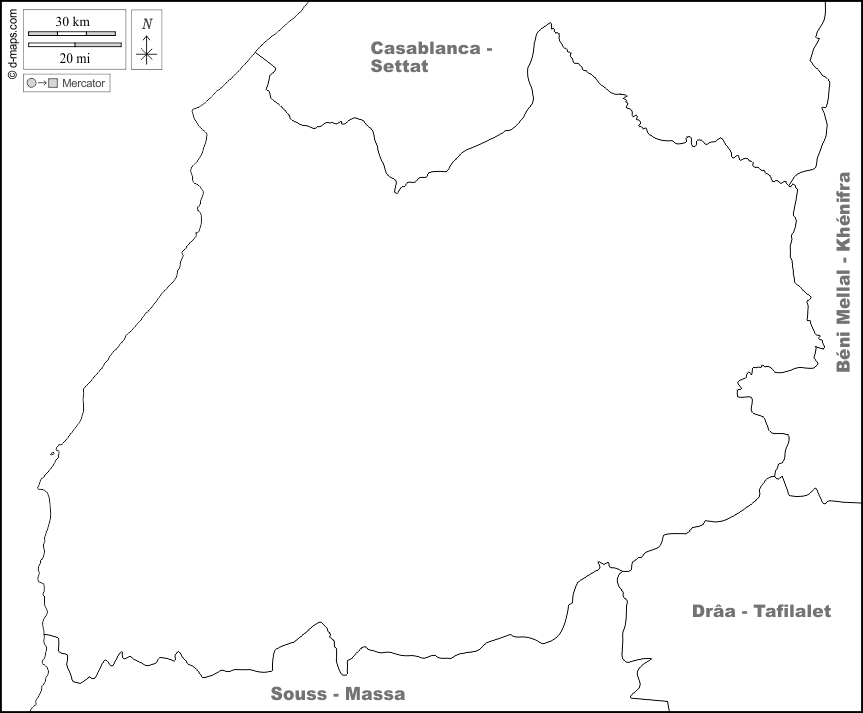 d-maps > अफ्रीका > मोरक्को > मारकेश-सफी > सीमाओं, नाम, सफेद