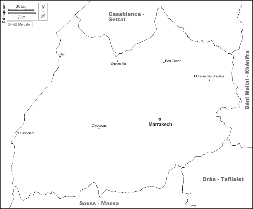 d-maps > अफ्रीका > मोरक्को > मारकेश-सफी > सीमाओं, मुख्य शहरों, नाम, सफेद