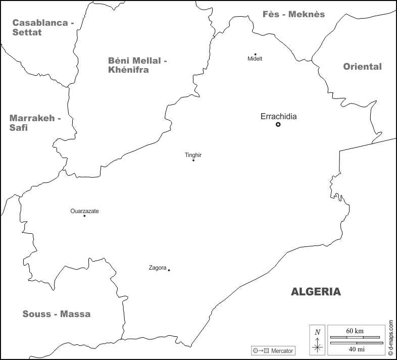 d-maps > अफ्रीका > मोरक्को > ड्रा-तफ़िलालेट > सीमाओं, मुख्य शहरों, नाम, सफेद