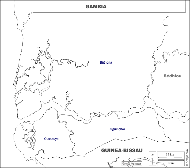 d-maps > अफ्रीका > सेनेगल > ज़िगुइंचोर > सीमाओं, विभागों, नाम, सफेद