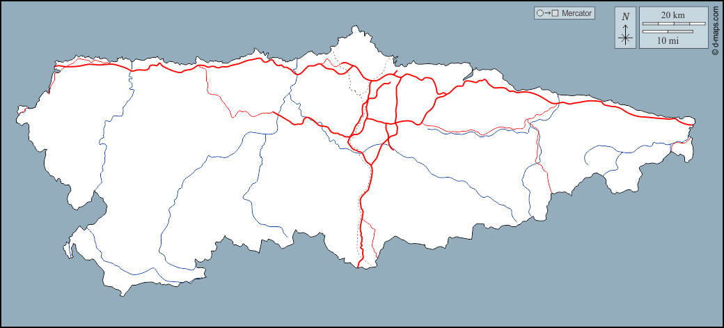 d-maps > यूरोप > स्पेन > आस्तुरियास > बाह्यरेखा, जल-सर्वेक्षण, सड़कों