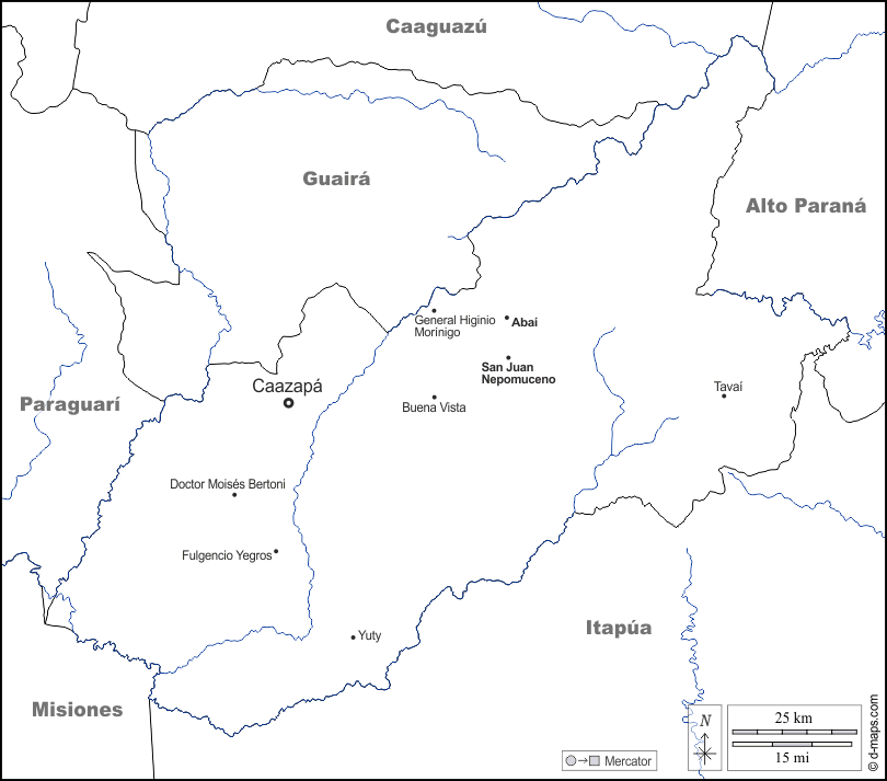 d-maps > महाअमेरिका > पैराग्वे > काज़ापास > सीमाओं, जल-सर्वेक्षण, मुख्य शहरों, नाम, सफेद
