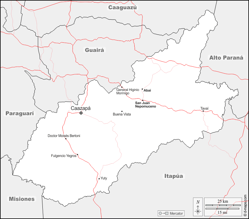 d-maps > महाअमेरिका > पैराग्वे > काज़ापास > सीमाओं, मुख्य शहरों, सड़कों, नाम