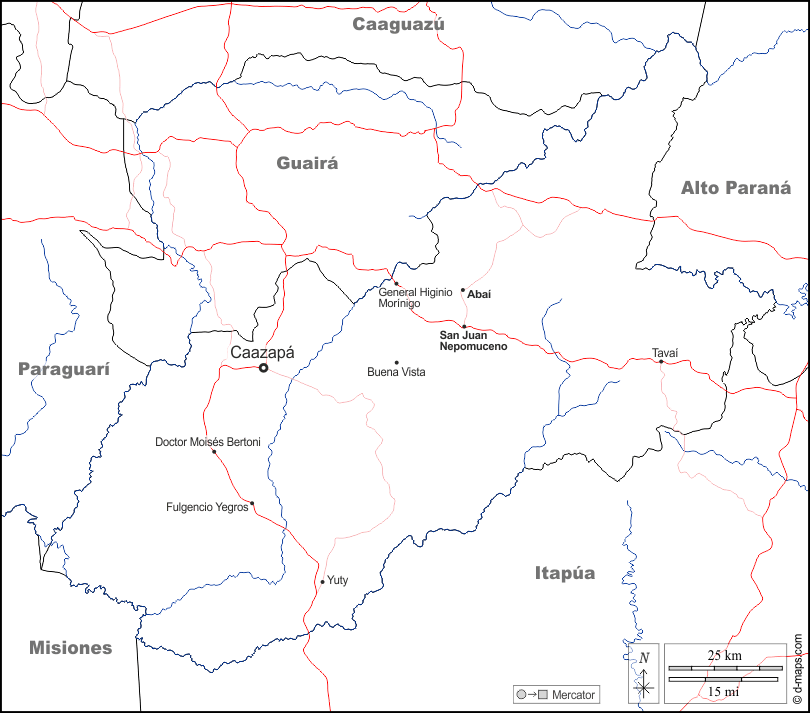 d-maps > महाअमेरिका > पैराग्वे > काज़ापास > सीमाओं, जल-सर्वेक्षण, मुख्य शहरों, सड़कों, नाम, सफेद