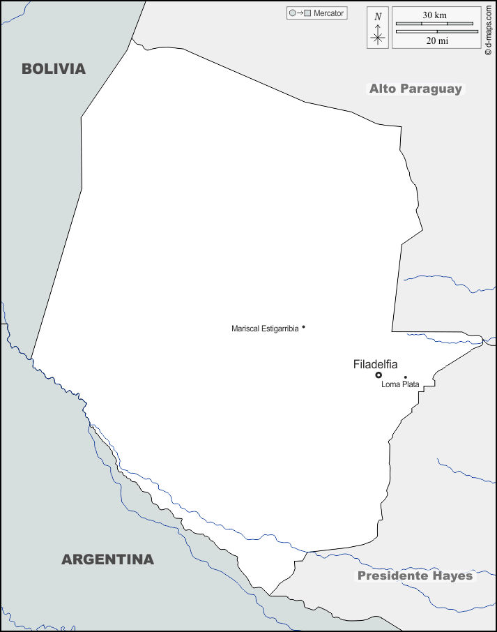 d-maps > महाअमेरिका > पैराग्वे > बोकेरोन > सीमाओं, जल-सर्वेक्षण, मुख्य शहरों, नाम
