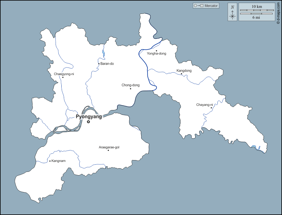 d-maps > एशिया > उत्तर कोरिया > प्योंगयांग > बाह्यरेखा, जल-सर्वेक्षण, मुख्य शहरों, नाम